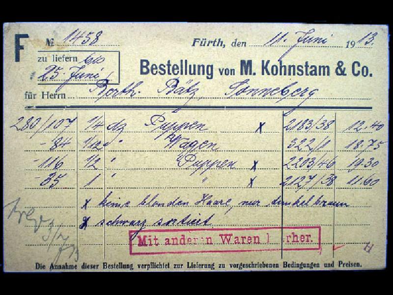 order from Moses Kohnstam & Co Fuerth 1913