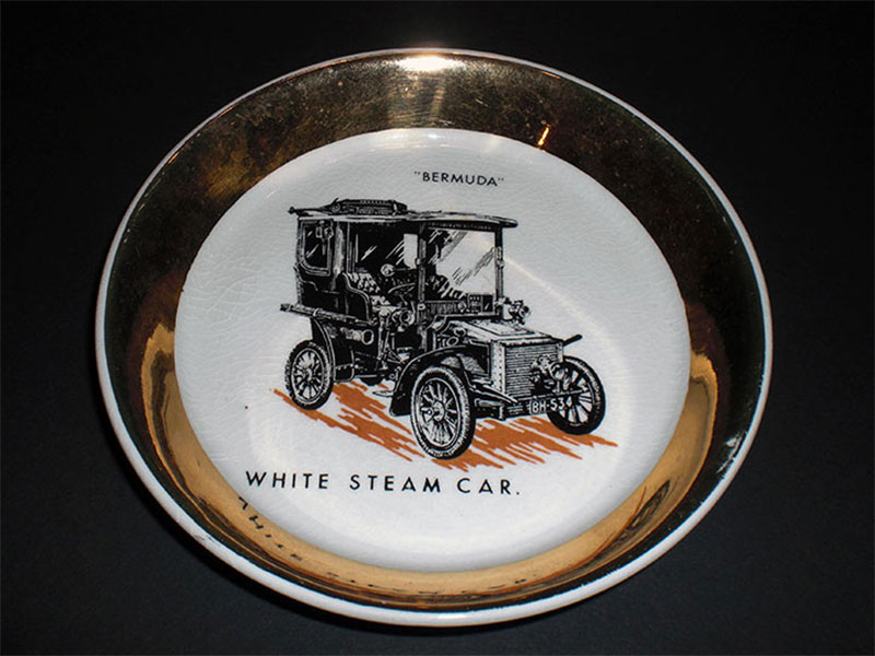 Porcelan Plate Gold White Steam Car Moko